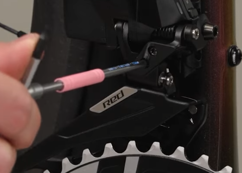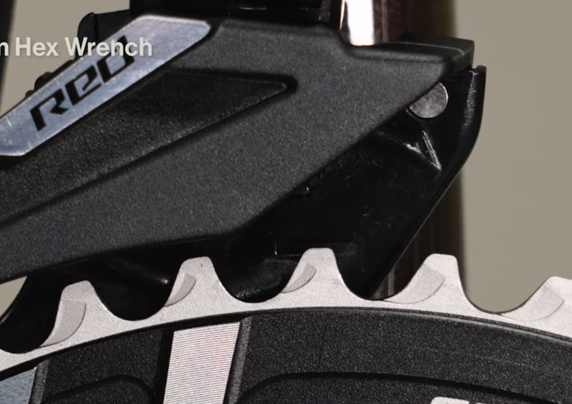 • 内側にしてローリミットを調整して「ディレイラーの外側がチェーンリングの真上に来るようにする」